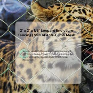 Modern zoo design focuses on “invisible” barriers that make the visitor feel part of the environment. Our 3″ x 3″ x 1/8″ handwoven stainless steel leopard netting achieves this by maximizing open space. The 3-inch diamond aperture provides a clear line of sight for guests and cameras, while the 1/8″ (3.2mm) cable provides the heavy-duty containment required for adult leopards, jaguars, and panthers.